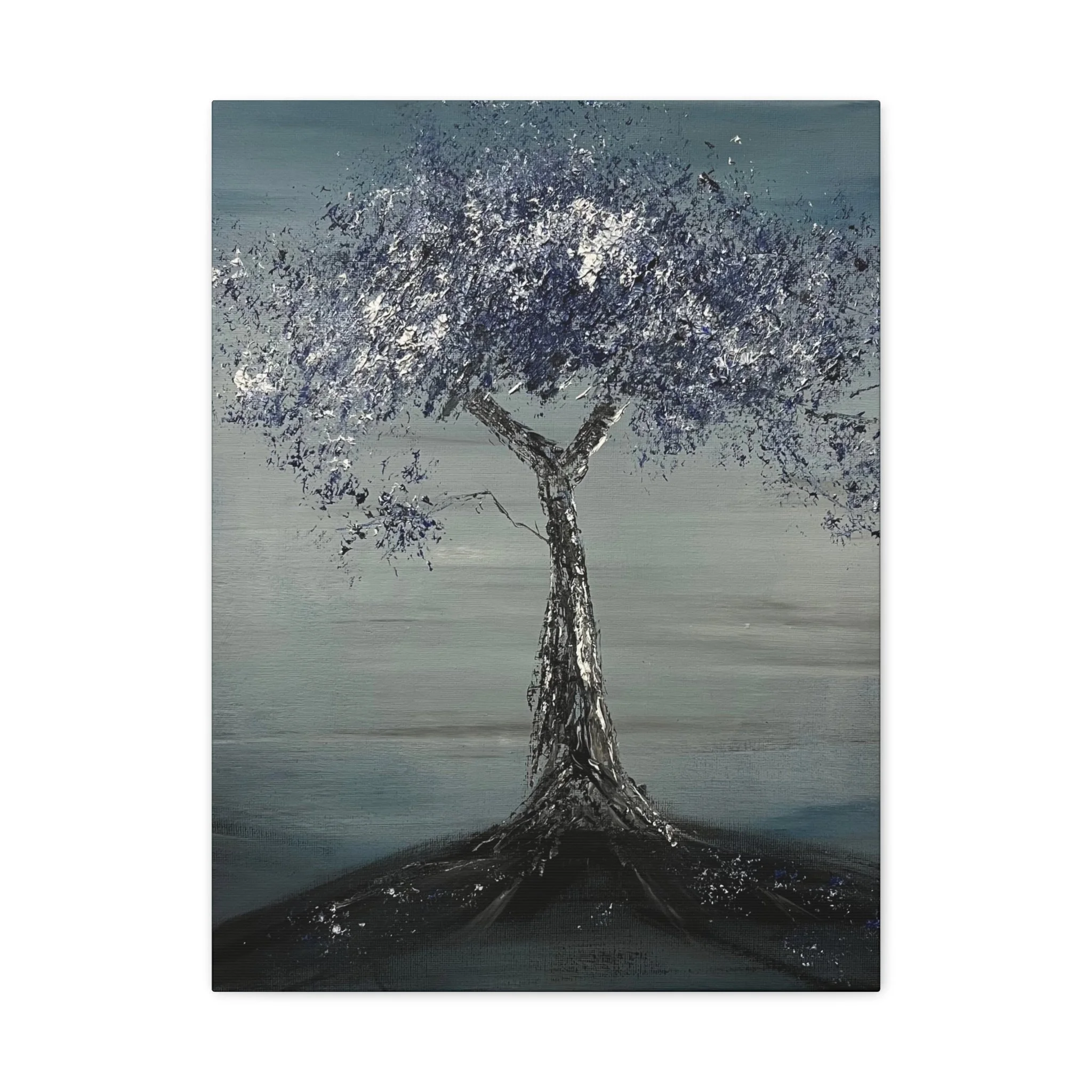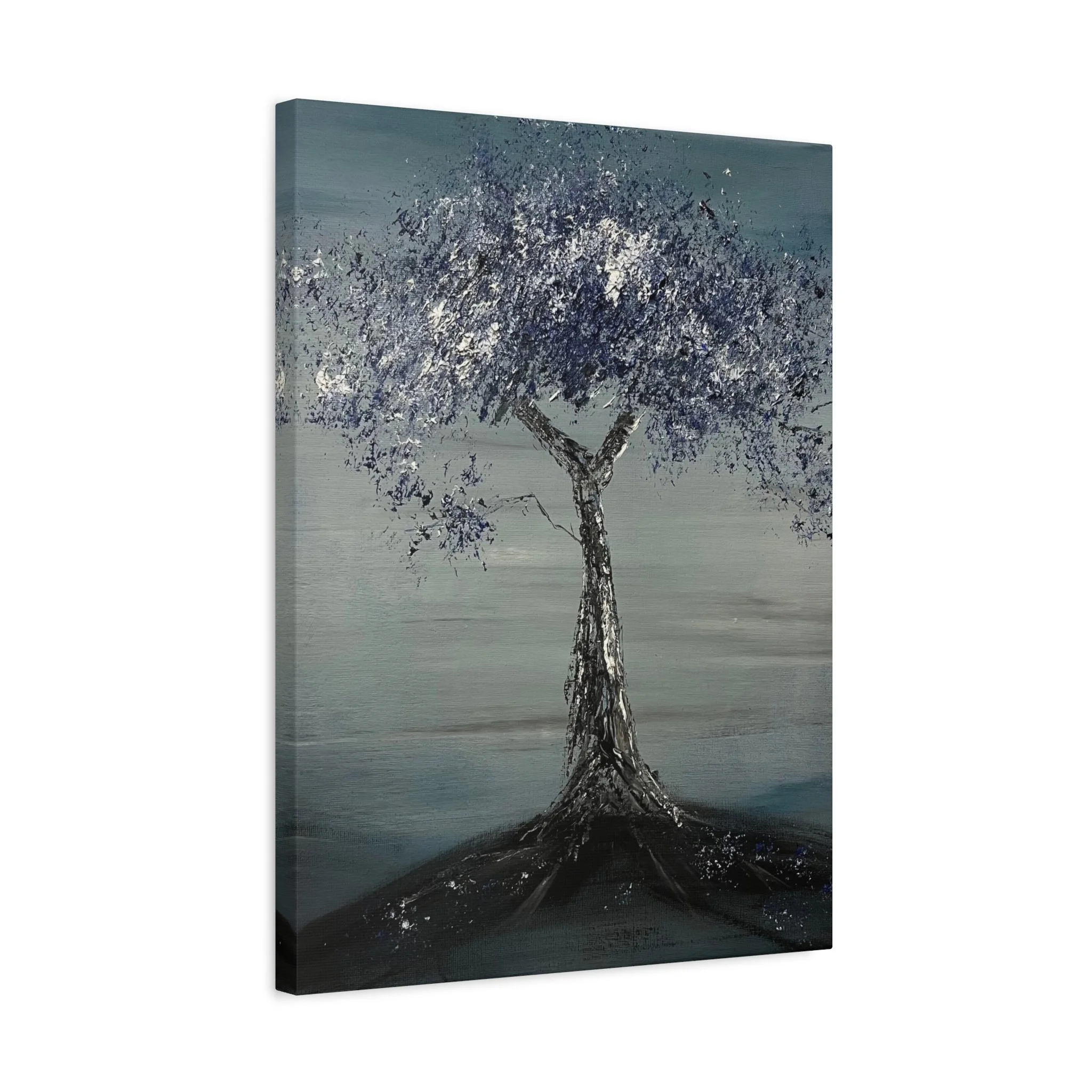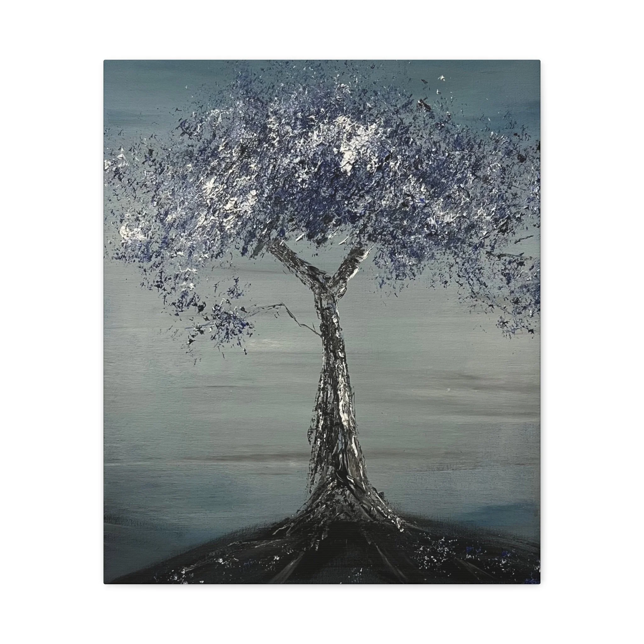 Stretched Canvas Art - Serene Blue Tree Design for Home Decor