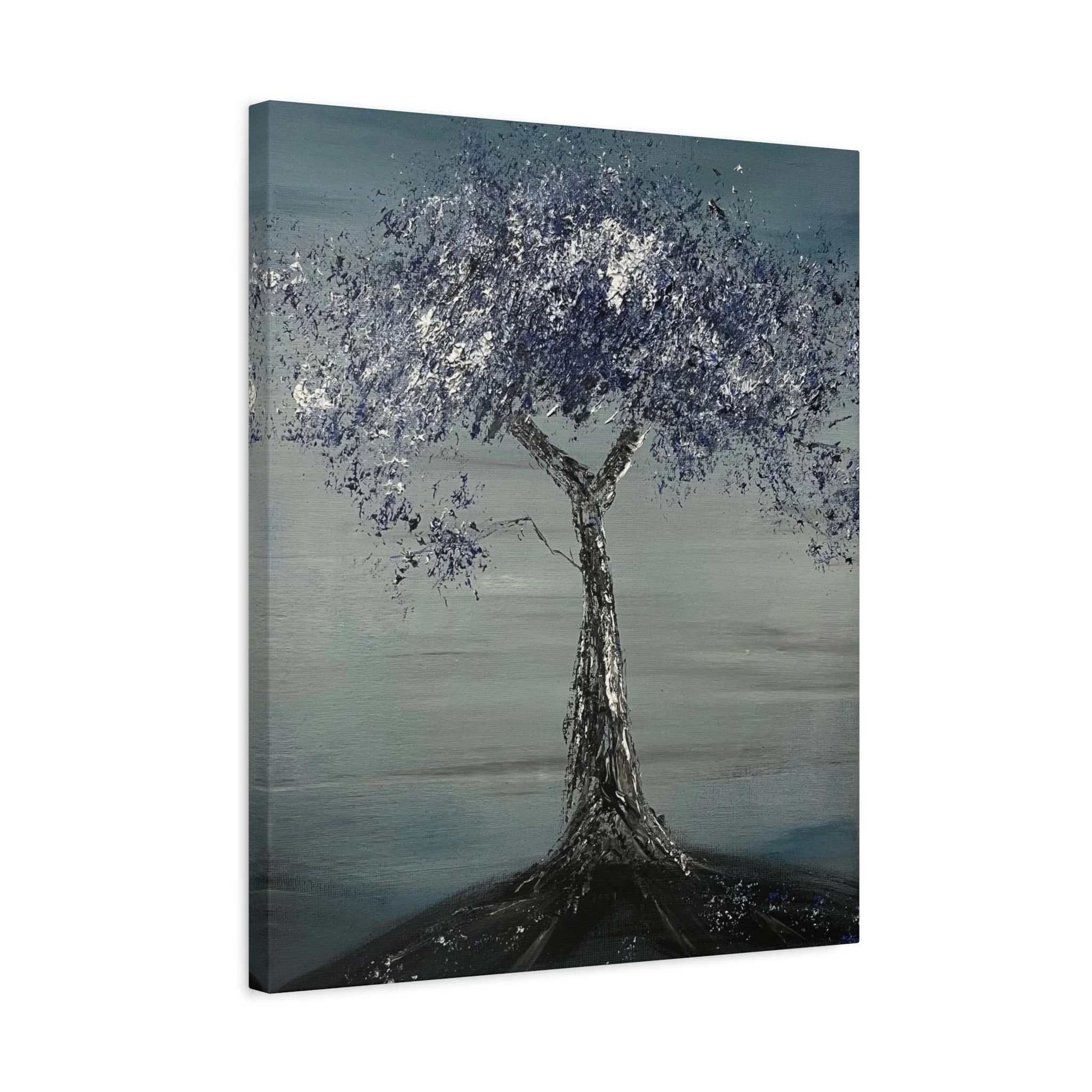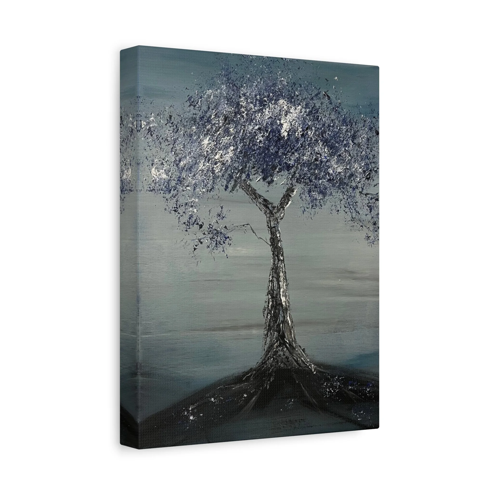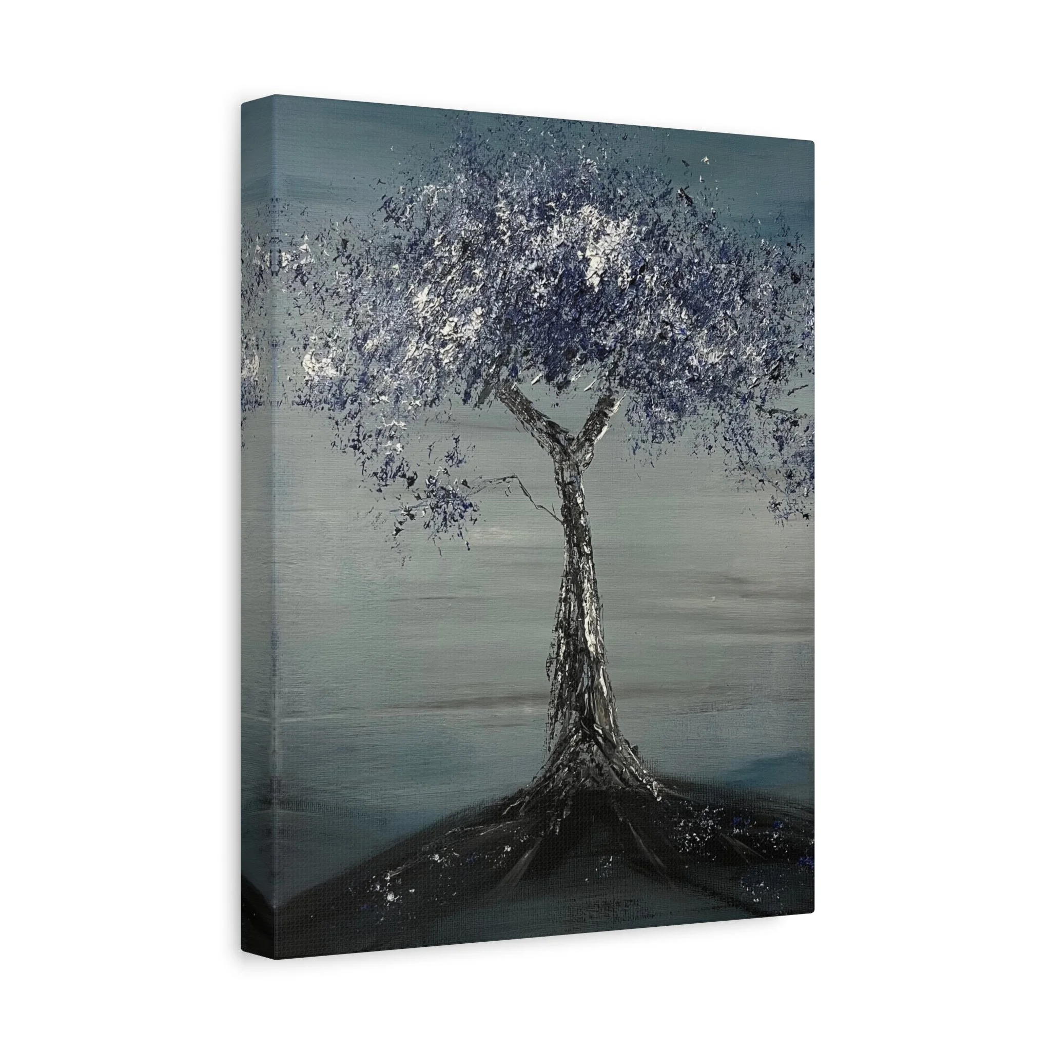Stretched Canvas Art - Serene Blue Tree Design for Home Decor